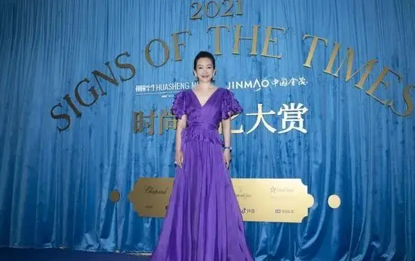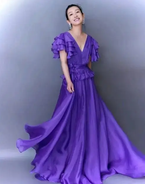 说说秦海璐的穿搭吧。她长得就挺有东方女人的韵味,高挺的鼻子,眉峰也挺高,看起来气场十足。这次她穿了一件紫色的缎面连衣裙,大气又精致。